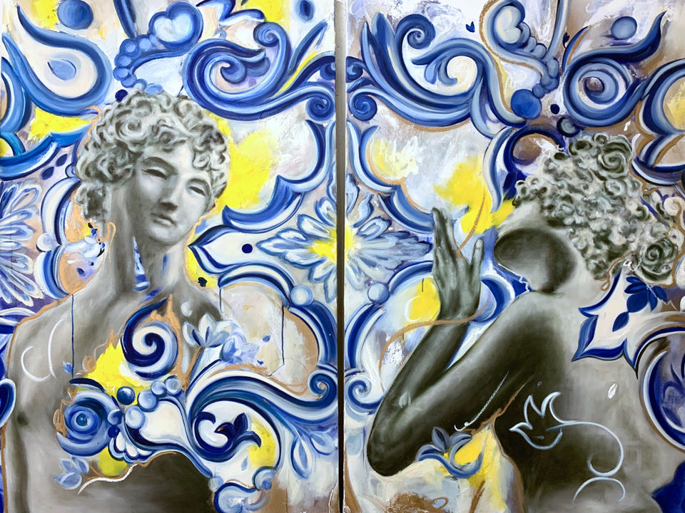 Original paintings inspired by gates, clouds and ancient symbols — created to elevate any space with atmosphere, depth and presence. Each piece is a one-of-a-kind portal, painted slowly with intention